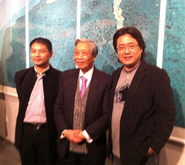 左起外灘游艇俱樂部總經理張耀偉、著名畫家陳家泠、公司董事長張偉宗