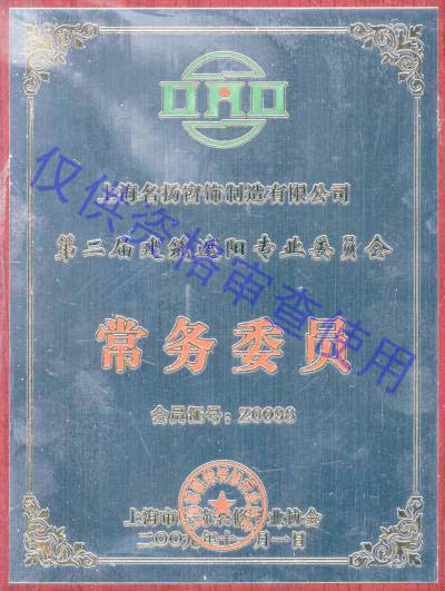 建筑遮陽專業(yè)委員會常務委員證