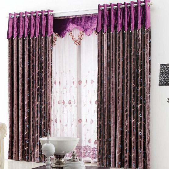 花型、色彩及款式:花型以抽象的花卉圖案為主;色彩濃郁,以深色調(diào)為主。如:紫色、玫紅。平過簾頭或波浪簾頭款式均可使用。